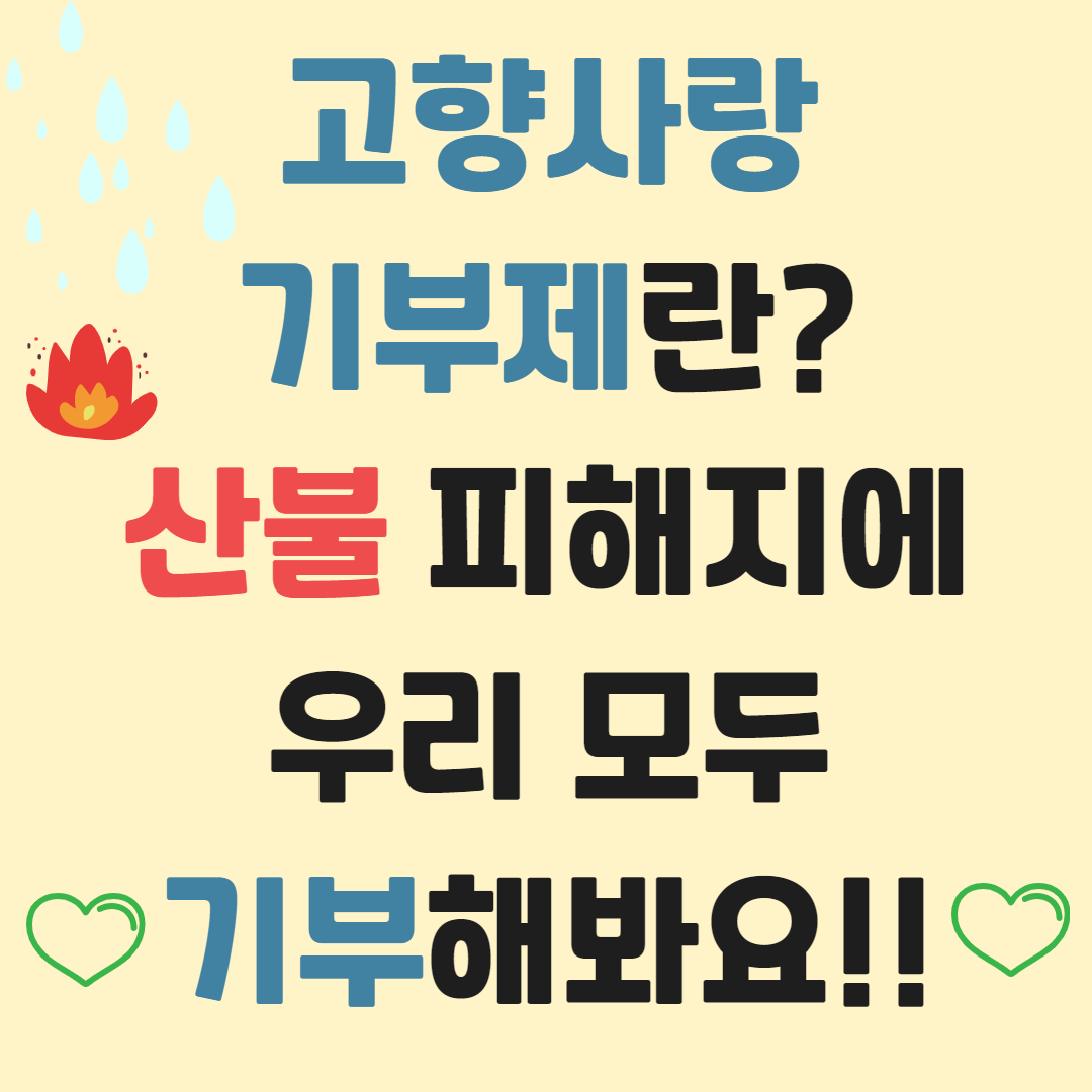 산불 특별재난지역에 기부하게 되면 피해지역을 도울 수 있다고 하는데, 고향사랑기부제에 대해 자세히 알아보도록 하겠습니다.