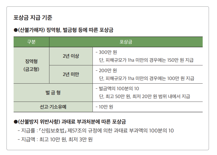 - 산불 발생 시 신고자에게 최대 300만 원 포상금 지급