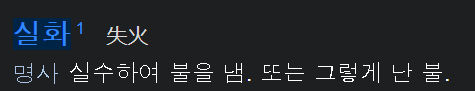 - [표준국어대사전] 실수하여 불을 냄. 또는 그렇게 난 불.