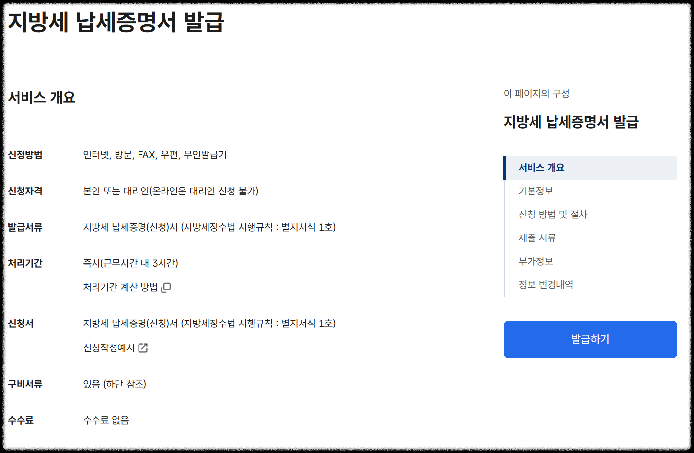지방세 납세증명서 발급 | 민원안내 및 신청 | 정부24