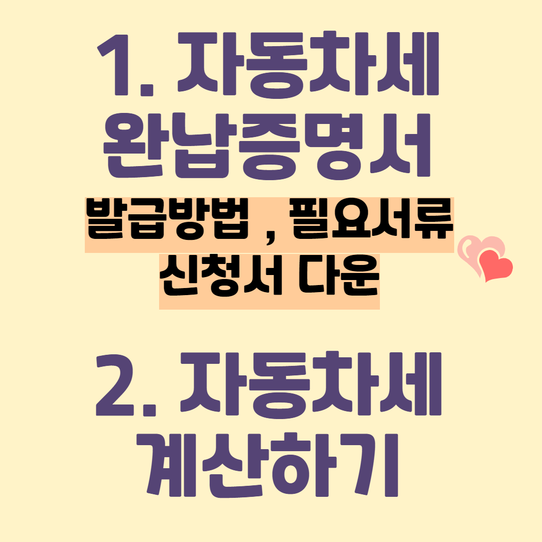 자동차 매매, 상속 등에 따라 꼭 필요한 자동차세 완납증명서(지방세 납세증명서) 발급하는 방법과 필요서류를 알려드리고, 행정복지센터 등에 방문신청 시 필요한 신청서 서식까지 첨두해 두었으니 필요하신 분은 다운받아서 작성하시길 바랍니다.