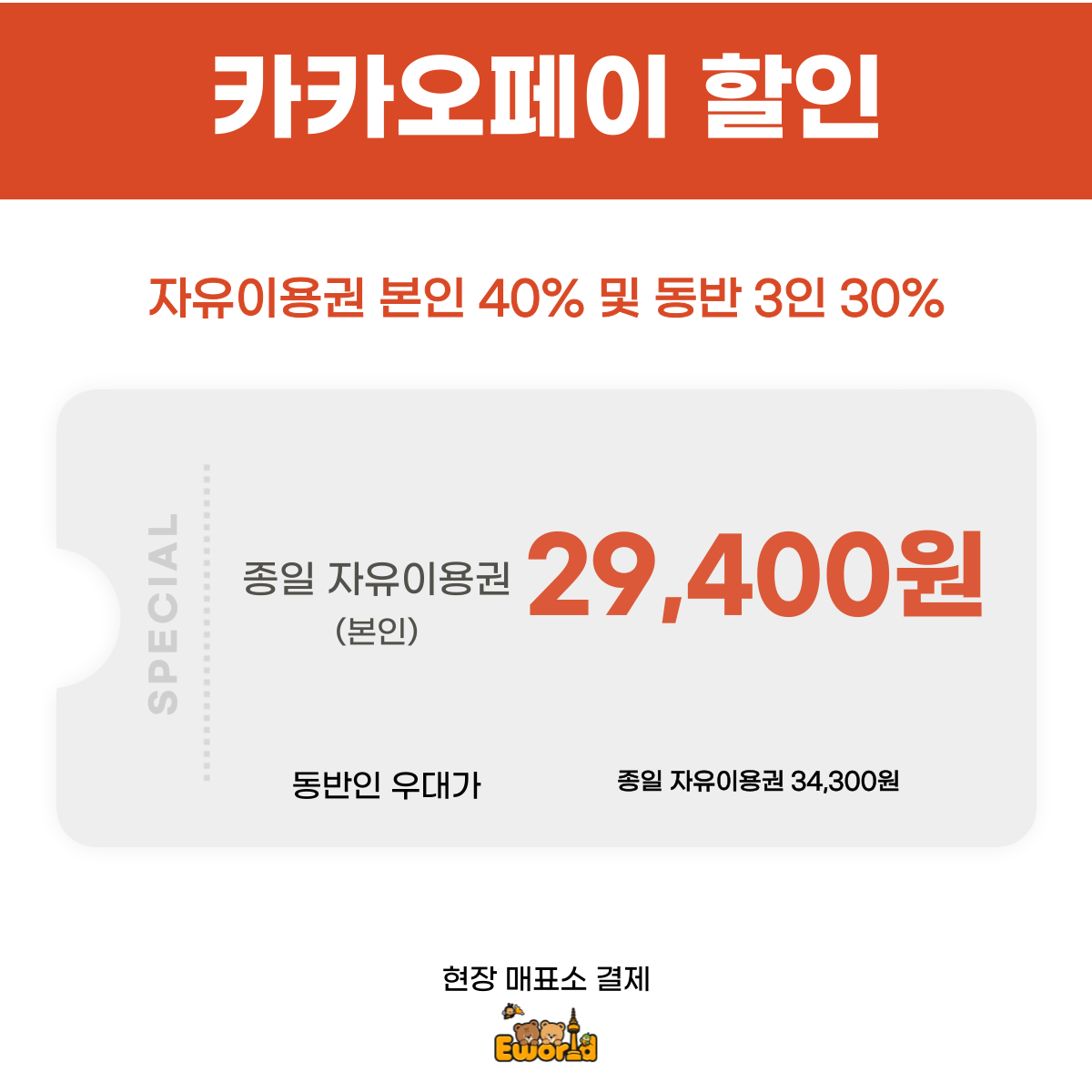 - 카카오페이 할인 적용 시, 성인요금으로 적용