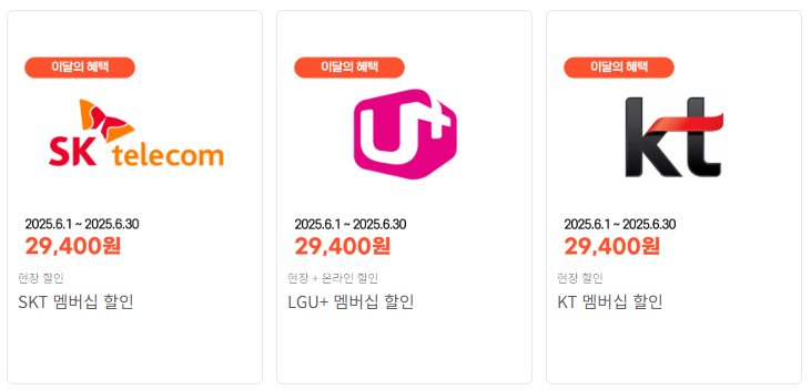 ⑦ 통신사 멤버쉽 할인(SKT, LG, KT)